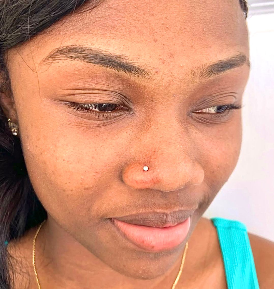 Stylish nose piercing performed by experienced professionals with safety disposable tools.