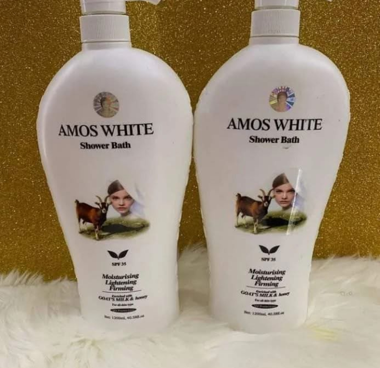 Amos white skin lightening shower bath is formulated to give you rich bathing experience. Lightens, Clear dark spot, Anti pimples and wrinkles Anti aging. Amos white triple action shower bath helps retain a fairer and brighter complexion.The moisturizing, firming and lightening effects helps restores new skin cells thus preventing sagging.