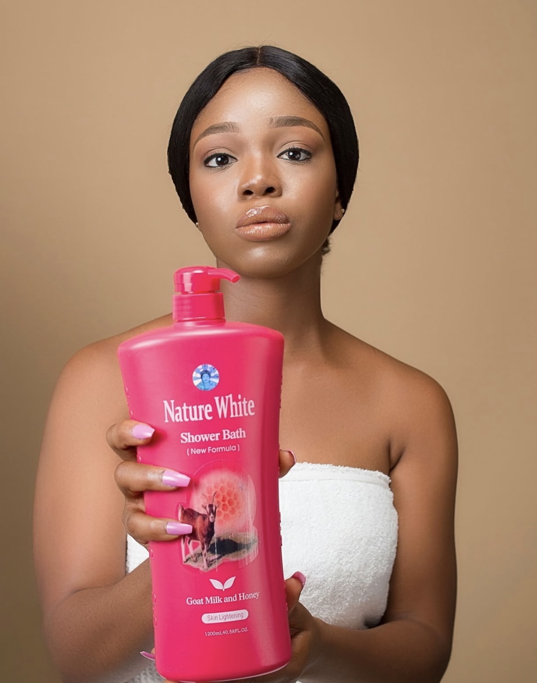 Nature White Shower Bath produced with goat milk and honey is a skin lightening formula that cleans deeply and soothes the skin.