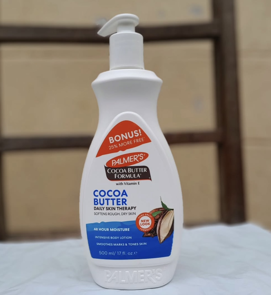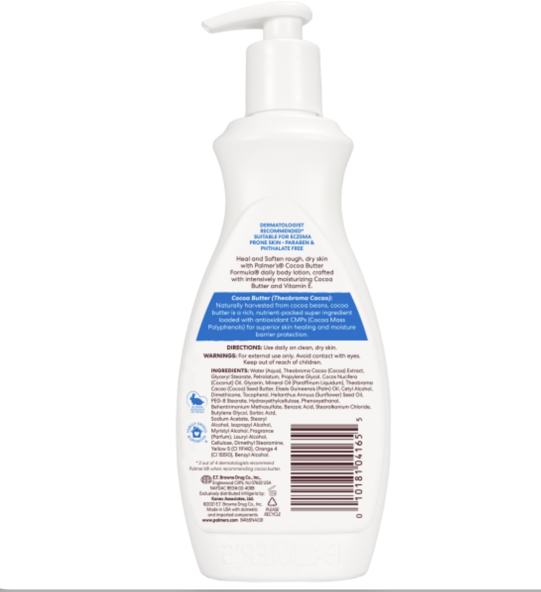 Heal and Soften rough dry skin with Palmer’s Cocoa Butter Formula daily body lotion, crafted with intensively moisturizing Cocoa Butter and Vitamin E.