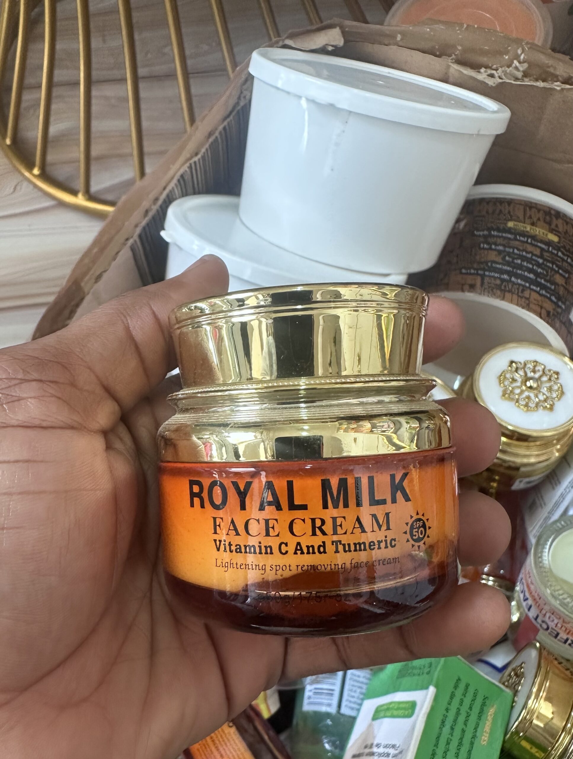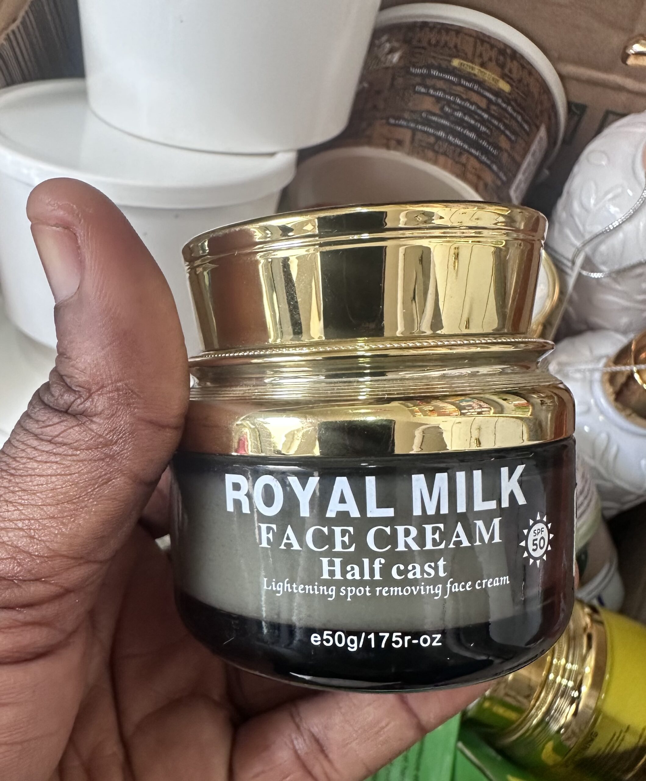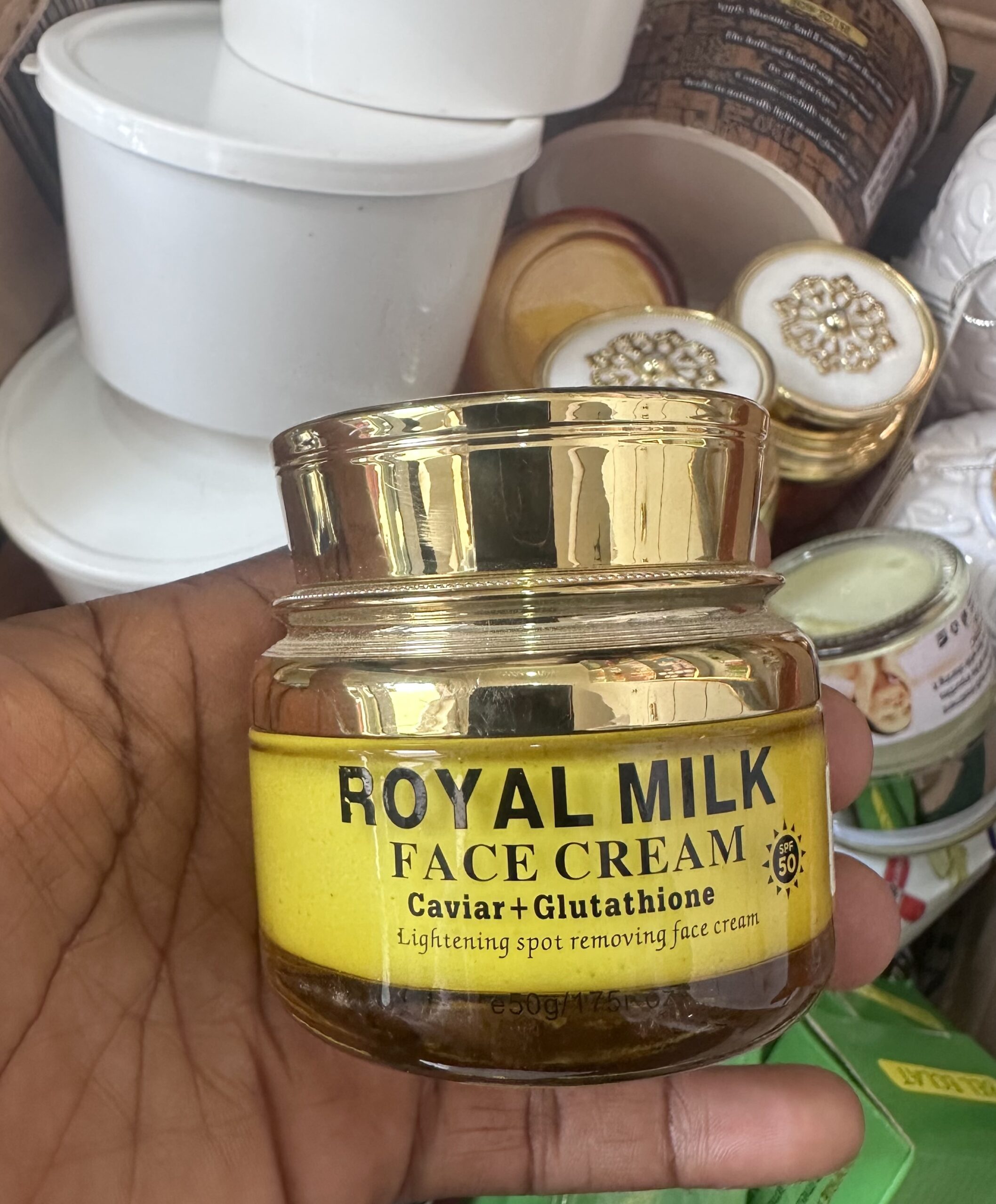 Royal Milk face cream lightens your face by fading away pimples and dark spots.