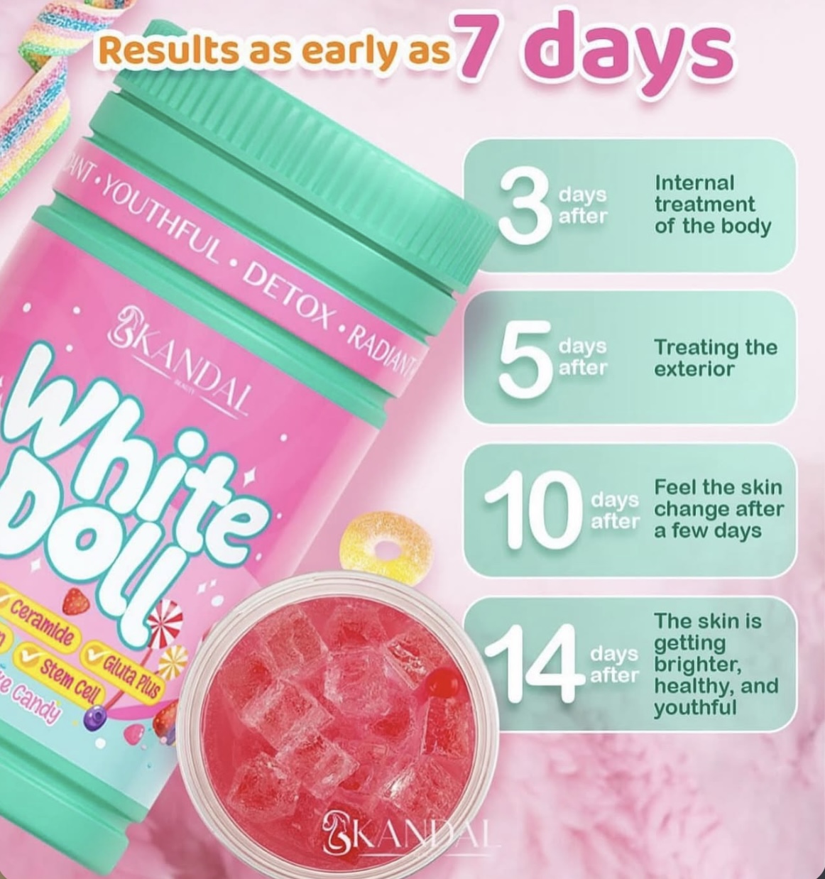 Uneven skin tone? Dark armpits? Dark neck? Say no more :Skandal White Doll is here to transform your skin from the inside out!
